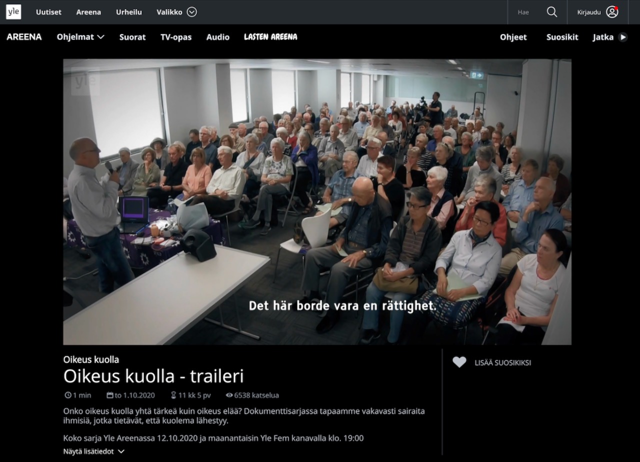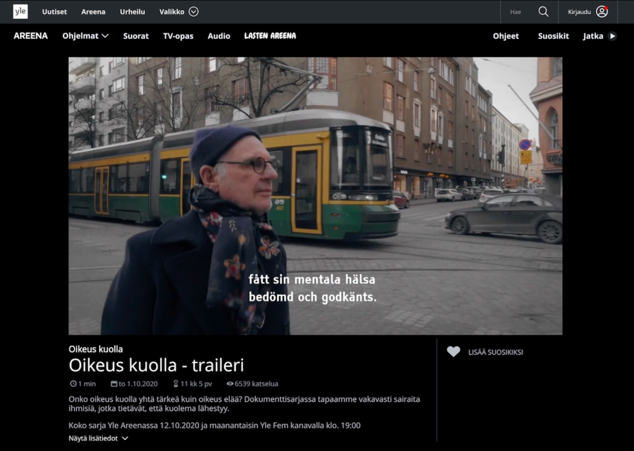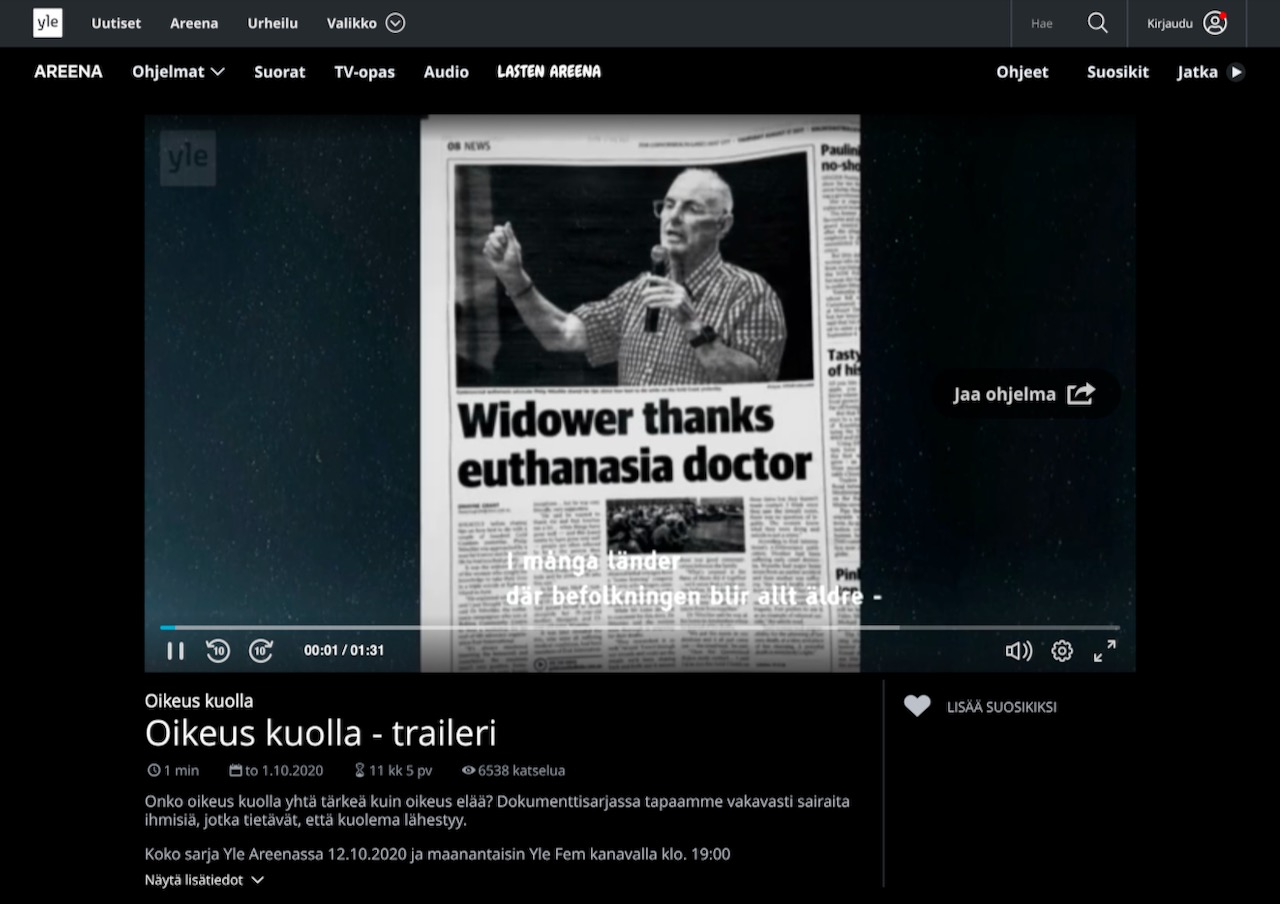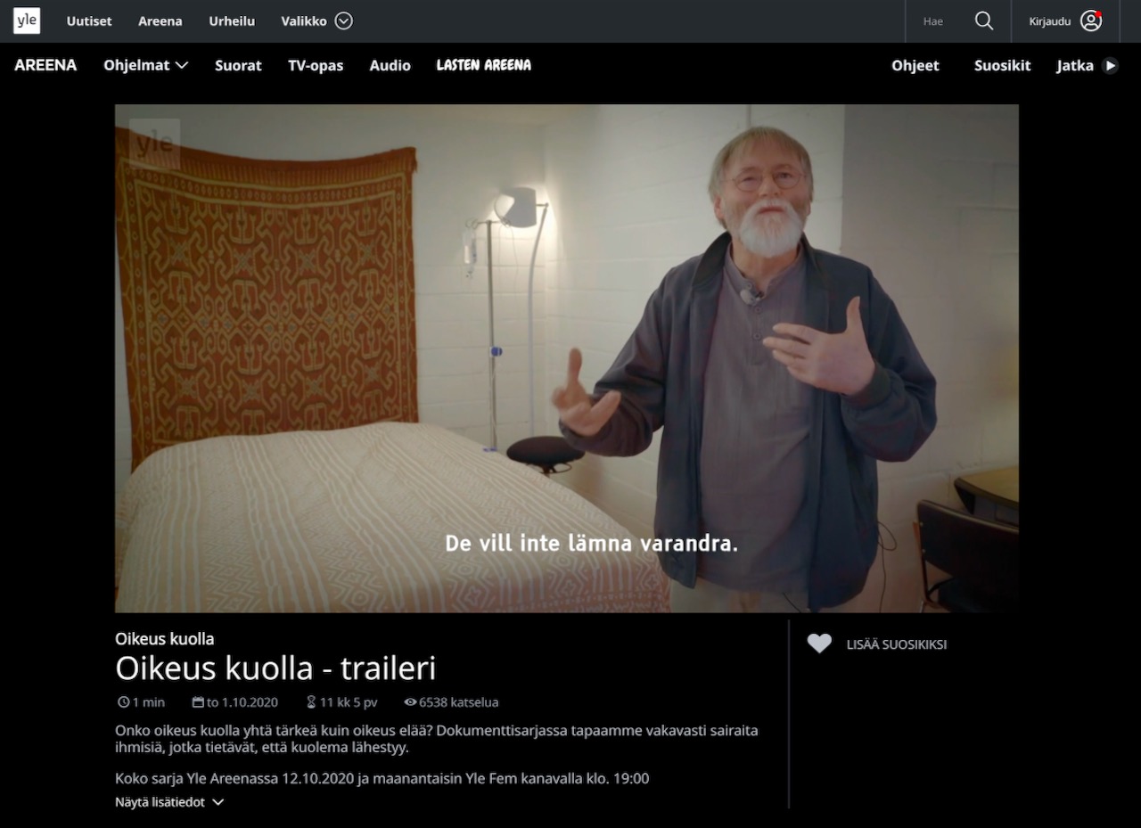 The series titled ‘Time to Die’ documented the end of life experiences of four unique individuals in Finland, the Netherlands and the US.