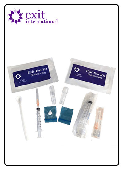 The facilitate sample collection Exit offers a kit from the online store. The kit consists of x2 qualitative Nembutal screening cassettes, syringes and needles for removing liquid samples for analysis from sterile veterinary bottles, two 1.5 ml liquid sample containers for forwarding liquid to the laboratory plus plastic Ziploc bags for powder samples.